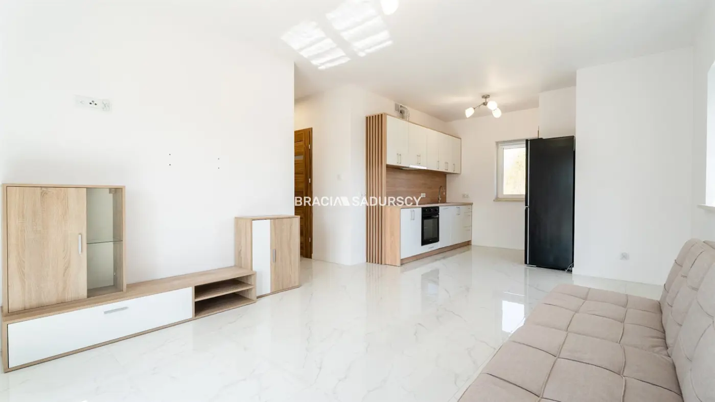 | SWOSZOWICE 10-15 min C.H. Zakopianka (Park Handlowy Zakopianka) Dom wolnostojący ok. 1 5 3,8 m2 powierzchni całkowitej, działka 4 , 65 ara - częściowo ogrodzona. Obecnie ok 60m części mieszkalnej (piętro)+ pomieszczenie gospodarcze (parter). Dom posiada duży potencjał własnej aranżacji. Istnieje możliwość zrobienie drugiego mieszkania na parterze, bądź powiększenie obecnej przestrzeni mieszkalnej lub zagospodarowania przestrzeni na parterze na działalność gospodarczą. N ad aje się również jako inwestycja pod wynaje m. Dom z 20 24 roku. Powierzchnia domu całkowita ok.1 53,8m2 ( obecnie ok. 60 m2 mieszkalnej ). Składa się dwóch poziomów i poddasza. PARTER : obecnie garaż/powierzchnia gospodarcza (ewentualnie pomieszczenia do własnej aranżacji) -sprzedający ma projekt (pomysł) na aranżacje na część mieszkalną. PIĘTRO : trzy oddzielne pokoje (w tym jeden jak główna sypialnia, drugi jako mały pokoik lub garderoba ), salon z aneksem kuchennym, łazienka (wanna), przedpokój. W tej części (mieszkalnej) ogrzewanie podłogowe. STRYSZEK (SCHOWEK) Na podłogach DÓŁ ( wylewki) GÓRA - płytki/ gres Ogrzewanie własne ( pompa ciepła ). Działka częściowo ogrodzone, nie zagospodarowana, kameralna - całość ok. 4 , 65 ara przynależna do domu, ogrodzona. Na działce znajdują się dwa budy nki gospodarcze/garaż ( blaszak ). Cena za całość 1 365 000 zł kontakt Piotr Dziadzio tel. + 48 515 234 864 ::DODATKOWE INFORMACJE | Prąd: jest | Woda: jest | Dojazd: UTWARDZONA | Otoczenie: zabudowa jednorodzinna | Ogrzewanie: pompa ciepła | Kanalizacja: tak | Komunikacja publ.: autobus | Okna: PCV | Balkon: brak | Zagosp. działki: niezagospodarowana | Ukształtowanie działki: płaska | Kształt działki: prostokąt | Rodzaj domu: wolnostojący | Stan wybudowania: Pod klucz | Pokrycie dachu: dachówka | Pozwolenie na użytkowanie: tak | Stan budynku: do wykończenia | Podpiwniczenie: nie | Garaż: dwustanowiskowy | Ogrodzenie działki: częściowo ogrodzona | Rok budowy: 2024 | Liczba pokoi: 3 | Liczba sypialni: 2 | Podłogi pokoi: płytki | Typ kuchni: aneks kuchenny - połączony z salonem | Rodzaj kuchni: otwarta na salon | Podłoga kuchni: gres | Typ łazienki: razem z wc | Liczba łazienek: 1 | Podłoga łazienki: gres | Liczba przedpokoi: 1 | Podłoga przedpokoi: gres | ::LINK DO STRONY | sadurscy.pl/offer/BS1-DS-309763 ::KONTAKT DO AGENTA | Piotr Dziadzio | +48 515-234-864 | piotr@sadurscy.pl ::DANE BIURA | Oddział BS1, Kapelanka | Kapelanka 1A/1 | 30-347 Kraków | 12 429-25-12 Pośrednik odpowiedzialny zawodowo za wykonanie umowy pośrednictwa: Dariusz Sadurski (licencja nr: 803) | Oferta wysłana z systemu Galactica Virgo