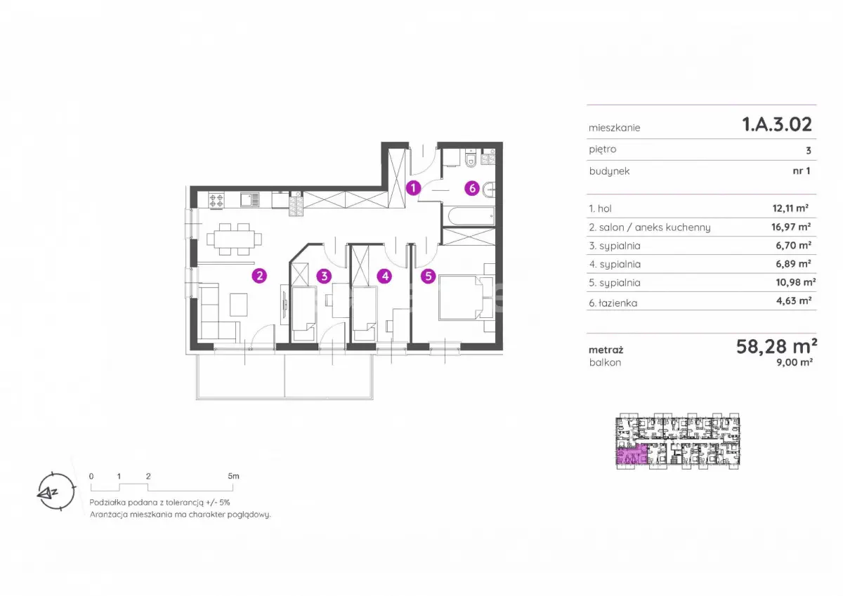 W ofercie na malowniczym osiedlu w nowoczesnej architekturze mieszkanie o powierzchni 58,28 m2 (1.A.3.02) na 3 piętrze.